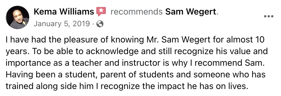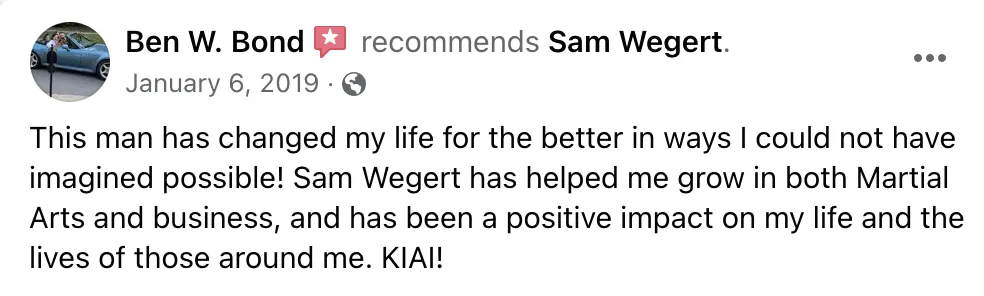 At 15 years old, Sam purchased his first martial arts school and graduated high school that same year. Over the next 15 years he expanded to 6 brick and mortar locations and through COVID built an online program. His company, UpLevel Martial Arts now has over 1,500 students and has trained more than 20,000 students in martial arts in 25+ states.